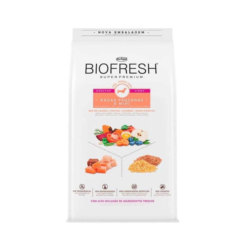 Biofresh Light Adulto Raza Pequeña y Mini es un alimento completo, equilibrado, con palatabilidad reforzada, indicado para una pérdida de peso eficaz y posterior mantenimiento, de manera saludable en perros adultos y senior con tendencia al sobrepeso u obesidad. Biofresh Light promueve la pérdida de peso, ya que posee un 70% menos de grasas y 20% menos de calorías, alta inclusión de L-carnitina para un correcto metabolismo de las grasas y preservación de la masa muscular. Esta fórmula, más el aumento de