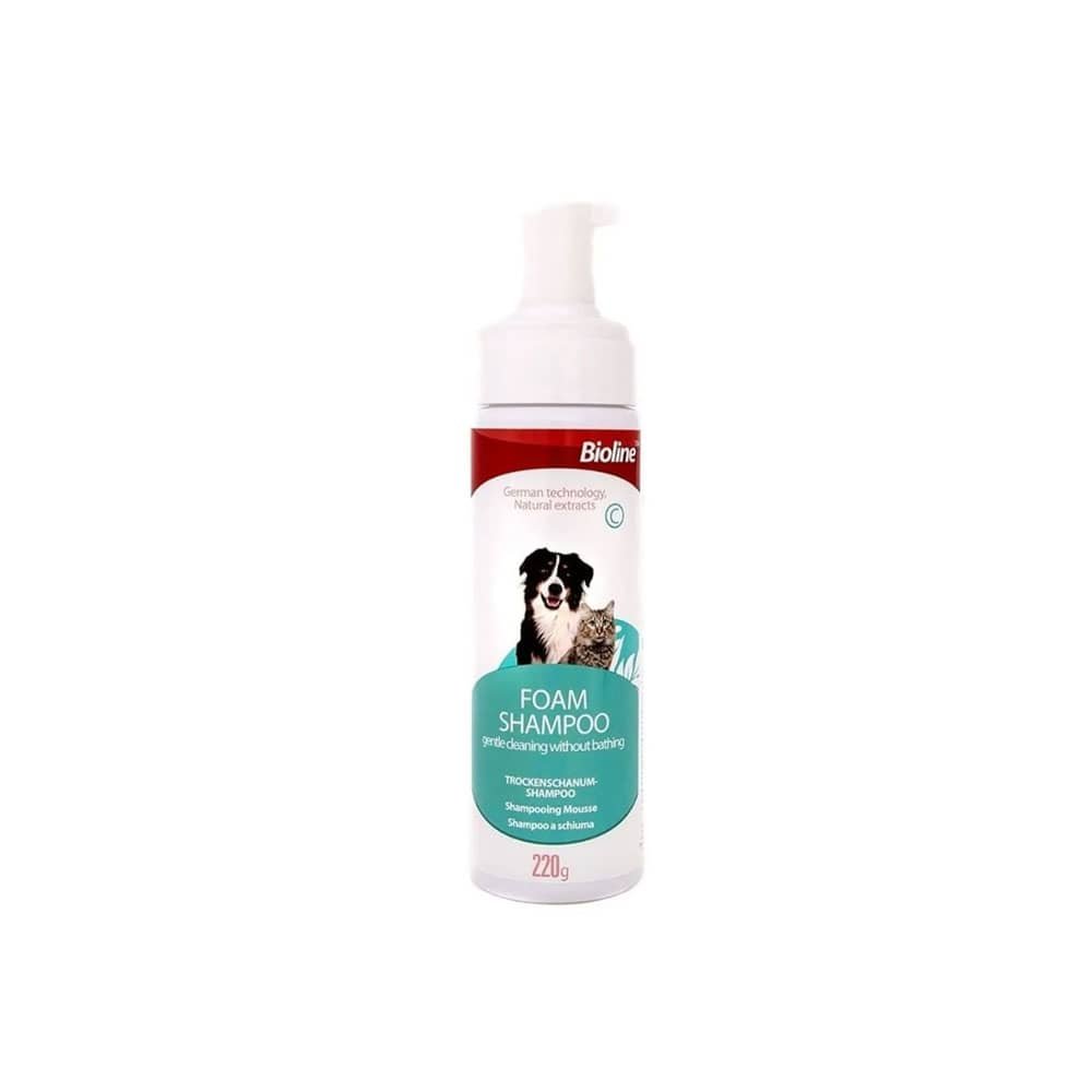 Shampoo En Seco Bioline 220g es una espuma limpiadora sin enjuague, es un shampoo para gatos y perros formulado con extractos naturales para desodorizar y limpiar la piel y pelaje del gato sin necesidad de aclarado. Apta para todo tipo de pieles y pelo.