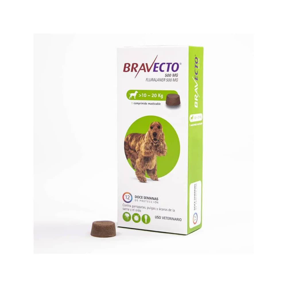 BRAVECTO es el único comprimido palatable que protege a tu perro hasta 12 semanas contra pulgas y garrapatas. Antiparasitario externo con forma de comprimido masticable que sirve para la prevención, control y tratamiento de infestaciones de pulgas y garrapatas en perros. Es de acción sistémica y actúa en forma inmediata persistiendo durante 12 semanas para matar garrapatas (Ixodes ricinus y Rhipicephalus sanguineus adultas y juveniles) y pulgas (Ctenocephalides felis y Ctenocephalides canis).