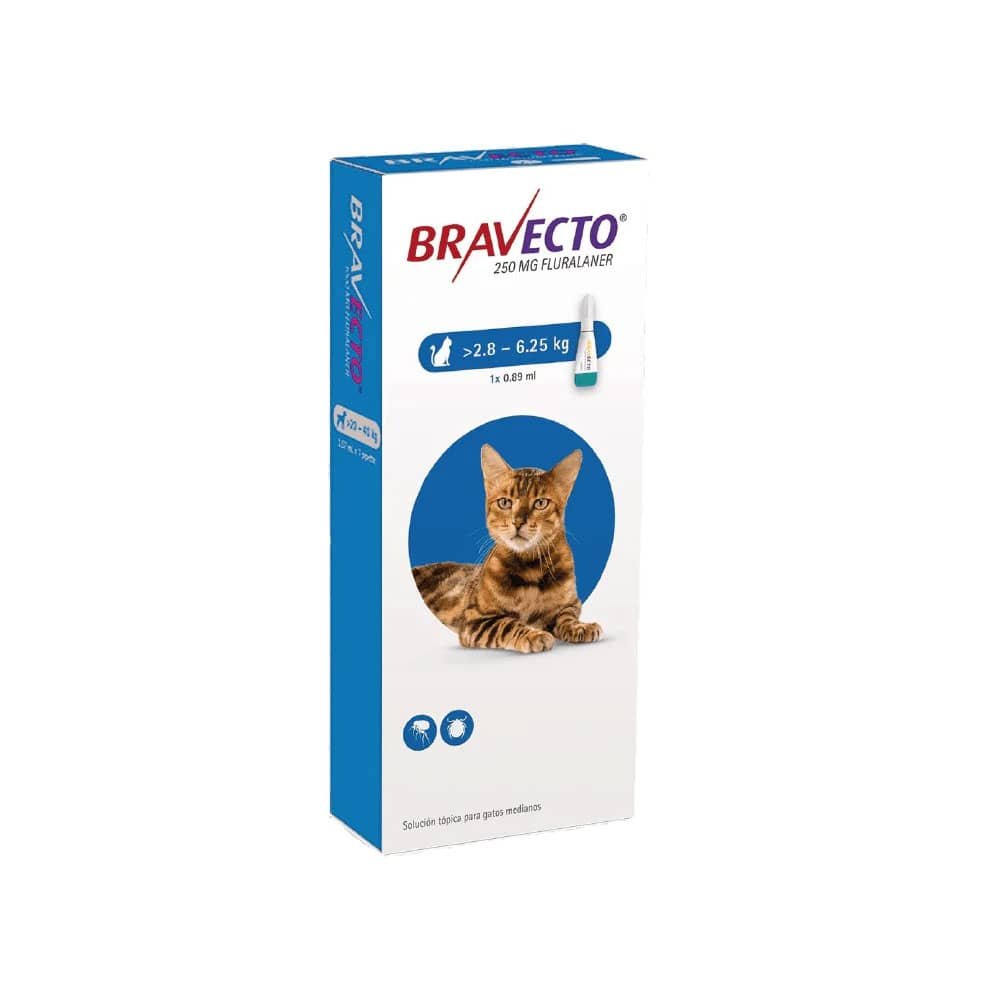 Bravecto para gato de 2.8 a 6.25kg – pipeta es un producto veterinario que se presenta como solución incolora o amarillenta para su aplicación sobre la piel del gato. Este es medicamento veterinario como ya mencionamos anteriormente, tiene el rol de insecticida y acaricida sistémico, el cual proporciona una actividad inmediata y resistente para matar pulgas, como por ejemplo lo es la Ctenocephalides felis y como las garrapatas llamadas Ixodes ricinus durante 12 semanas.