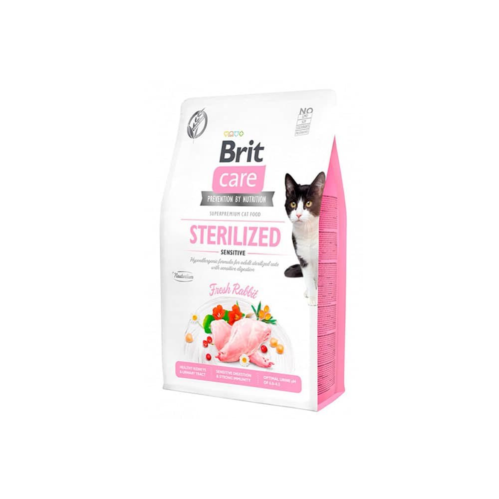 Brit Care Cat Sterilized Sensitive es una fórmula hipoalergénica para gatos adultos esterilizados. Indicado para la salud de los riñones y el tracto urinario, contiene frutas y hierbas, ricas en antioxidantes naturales y vitamina E, que protegen al organismo de los radicales libres y mantienen fuerte el sistema inmunológico durante toda la vida de tu gato. La carne dietética, de conejo fresco, favorece la salud del corazón y el sistema circulatorio y ayuda a mantener una condición física óptima. Libre de cereales, SIN colorantes, SIN conservantes, SIN OMG y SIN soja.