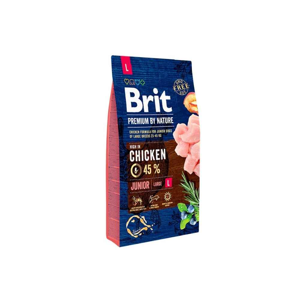 Brit Premium by Nature Junior Large es un alimento indicado para cachorros (3-24 meses) de razas grandes y gigantes (25-45 kg). Recomendado también para hembras gestantes o lactantes. Formulado con alto contenido de carne deshuesada y deshidratada de pollo, una fuente natural de proteína fácil de digerir para un crecimiento óptimo.