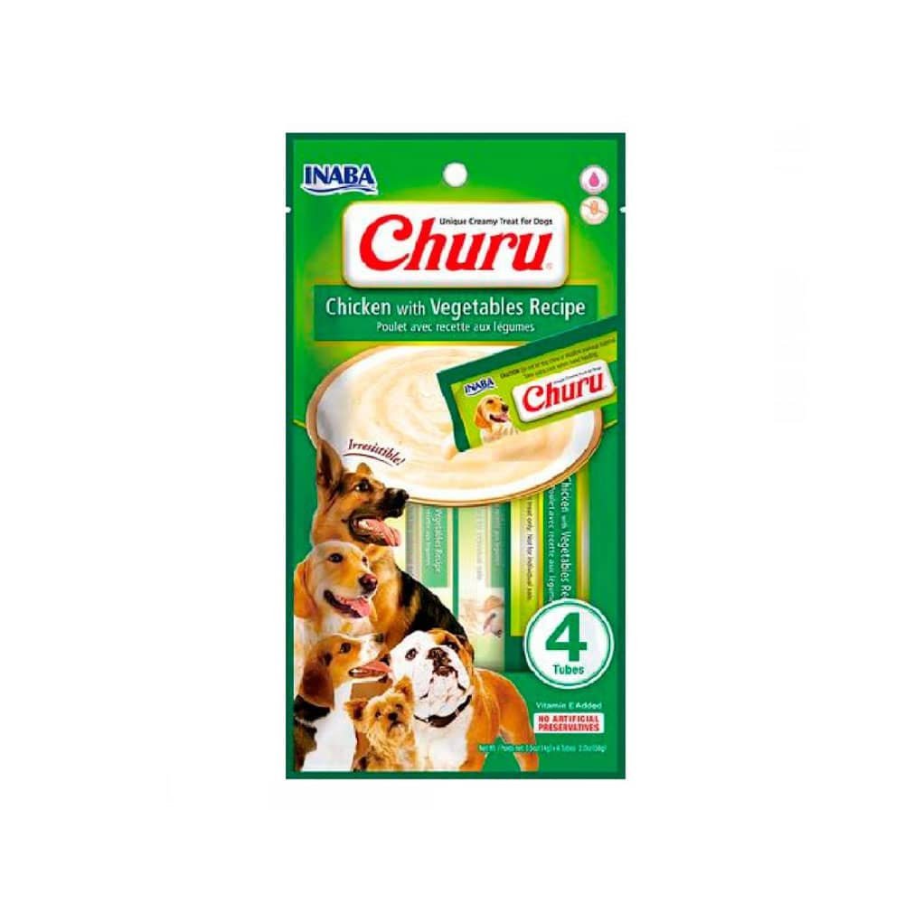 Ciao Dog Churu Chicken with Vegetables es un novedoso y delicioso snack* para perros de textura cremosa (puré) y alta palatabilidad. Tiene un alto contenido de humedad lo que contribuye a la hidratación de su perro. Estas golosinas cremosas para perros están hechas con pollo 100% puro y natural de granja y vegetales frescos. Libre de granos, sin conservantes ni colorantes artificiales. Disponible en packs de 4 y 8 tubitos de 0.7 oz (20 g)