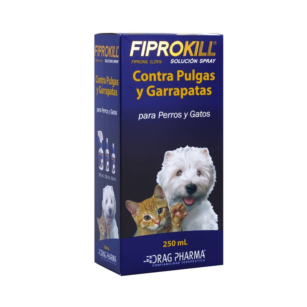 Fiprokill Spray es efectivo en el control y tratamiento de la infestación por pulgas (Ctenocephalides felis) y garrapatas (Rhipicephalus sanguineus) en perros y gatos desde los 2 días de edad, proporcionando un rápido efecto knock-down contra pulgas adultas.
