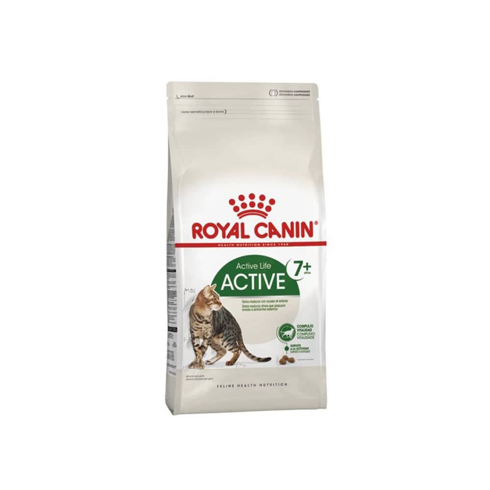 ROYAL CANIN FELINO ACTIVE 7+ es un alimento para gatos mayores de 7 años, que ayuda a mantener su vitalidad y a limitar la acción de los radicales libres sobre las células, gracias a la combinación de antioxidantes.