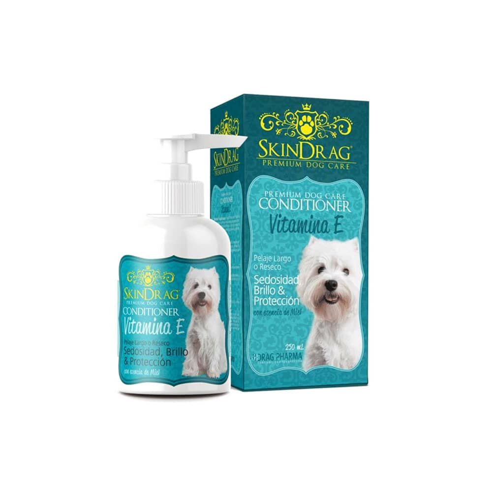 SKINDRAG® Acondicionador es una fórmula rica en Vitamina E, que gracias a su efecto antioxidante, ayuda a reconstituir la materia interna del pelo debilitado, evita los cambios de coloración, restaura el brillo natural del pelaje de su mascota, dejándolo más fuerte y sedoso.
