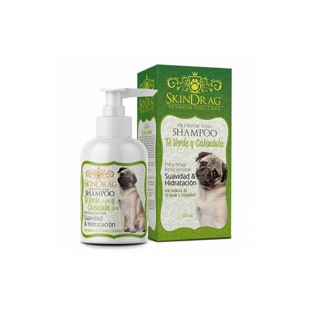 SkinDrag Té Verde y Caléndula es un shampoo para perros con la piel extra sensible, que proporciona suavidad e hidratación.