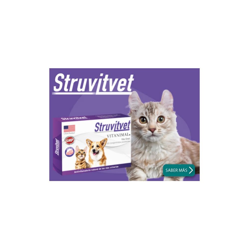 Struvitvet es un suplemento nutricional indicado como coadyuvante en la prevención y disolución de cristales de estruvita, siendo además un potente antiinflamatorio natural de las vías urinarias.